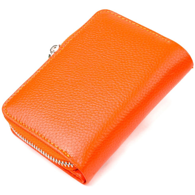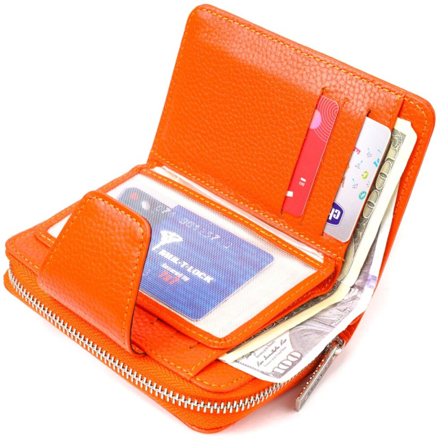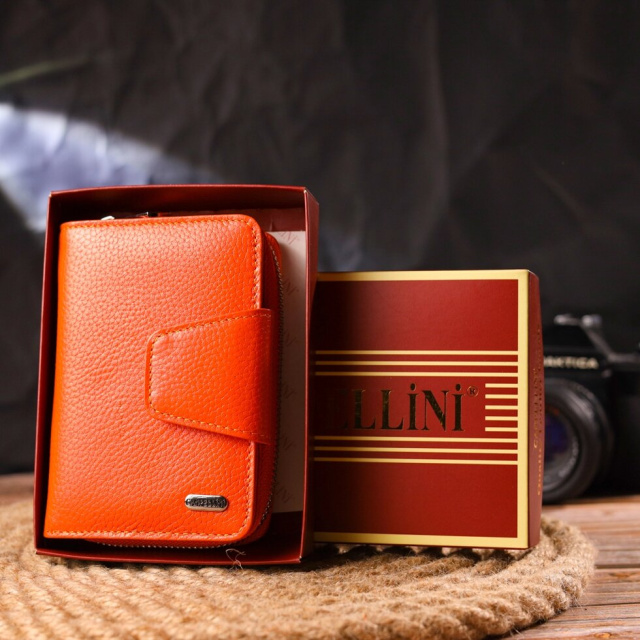 Яскравий жіночий гаманець вертикального типу із натуральної шкіри. Аксесуар має відділення для купюр, вісім осередків для карток (два під сіточкою), дві прилеглі кишені та дві кишені на блискавках. Закривається аксесуар у два складання хлястиком на магніт. Купуючи шкіряний аксесуар цієї фірми собі або на подарунок, будьте певні, що він радуватиме око не один рік.