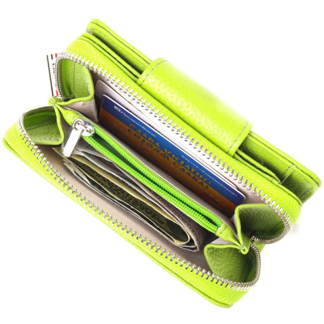 Молодіжний жіночий гаманець вертикального типу із натуральної шкіри. Аксесуар має відділення для купюр, вісім осередків для карток (два під сіточкою), дві прилеглі кишені та дві кишені на блискавках. Закривається аксесуар у два складання хлястиком на магніт. Купуючи шкіряний аксесуар цієї фірми собі або на подарунок, будьте певні, що він радуватиме око не один рік.