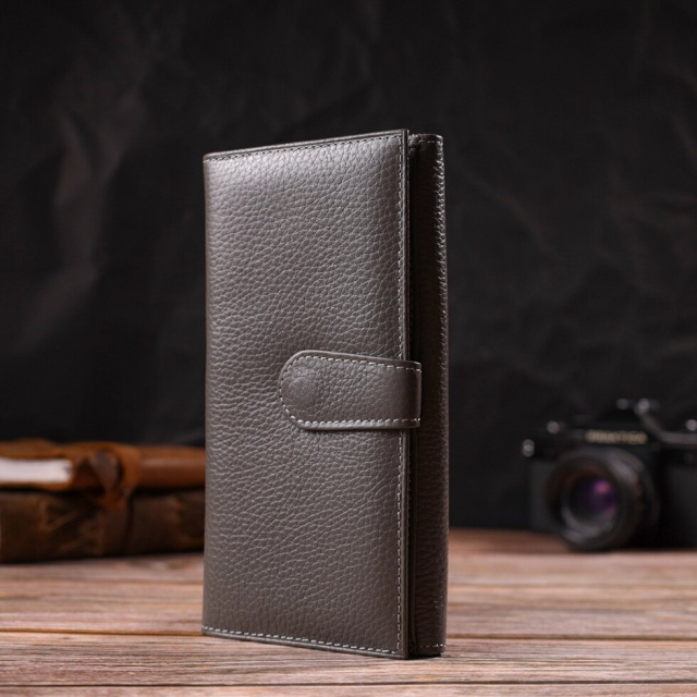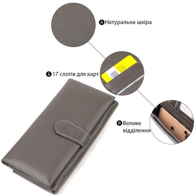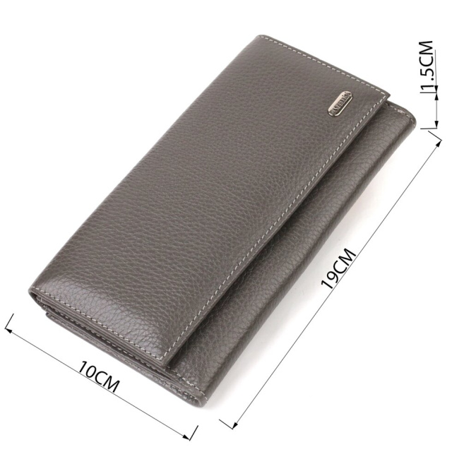 Практичний шкіряний гаманець для жінок, які люблять зручність і простоту. Аксесуар має одне основне відділення, сімнадцять кишень для карток, чотири прилеглі кишені та монетницю. Особливістю даної моделі є наявність блоку для кредитних карток, який закривається хлястиком на кнопку. На лицьовій стороні, у правому нижньому куті металевий логотип компанії виробника. Якщо ви вибрали товар цієї фірми, можете не сумніватися, що виріб прослужить дуже довго і не втратить свого первісного вигляду.