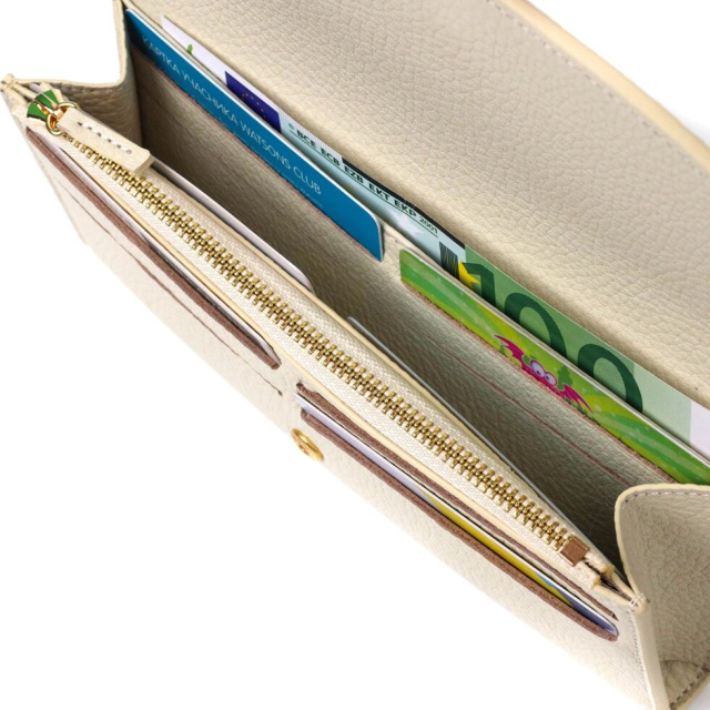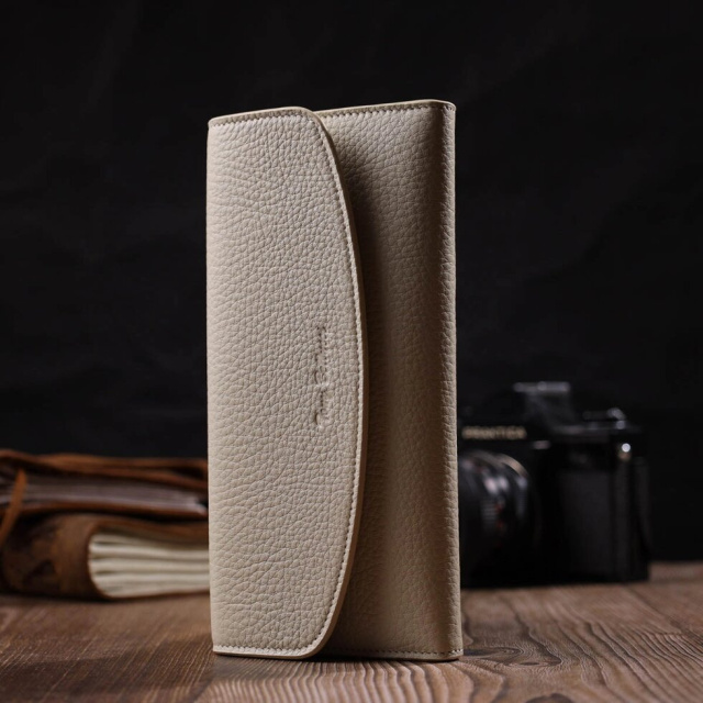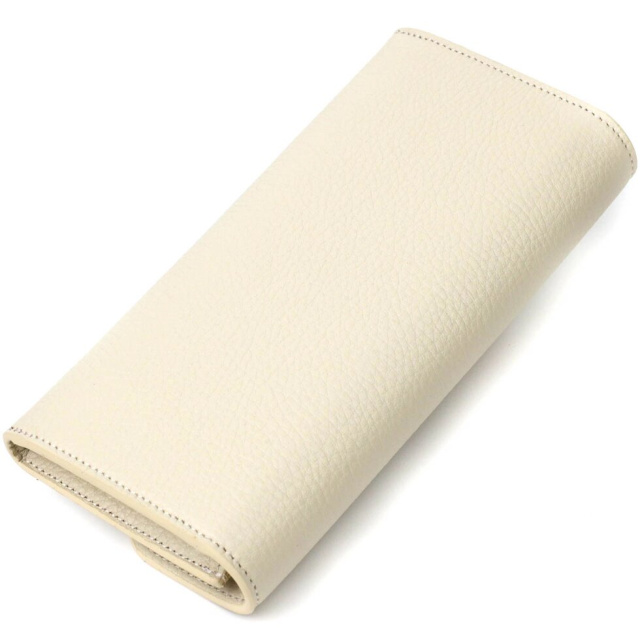 Сучасний жіночий гаманець з натуральної шкіри флотар, для якої характерна міцність, зносостійкість та зерниста фактура. Аксесуар складається з одного широкого відділення для купюр, дванадцяти осередків для пластикових карток, однієї прилеглої кишені та монетниці на блискавці. У виробі використано якісну фурнітуру золотистого кольору. Закривається гаманець клапаном на кнопку. Купуючи цей шкіряний гаманець, Ви не тільки набуваєте стильної речі, але й отримуєте якісний аксесуар, який прослужить не один рік.