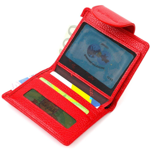 Яскравий місткий жіночий гаманець із натуральної шкіри. Аксесуар складається з двох широких відділень для купюр, дев'яти осередків для пластикових карток, двох прилеглих кишень, кишені під сіточкою та монетниці під клапаном зовні. У виробі використано якісну фурнітуру золотистого кольору. Закривається гаманець шкіряним хлястиком на кнопку. Купуючи цей шкіряний гаманець, Ви не тільки набуваєте стильної речі, але й отримуєте якісний аксесуар, який прослужить не один рік.