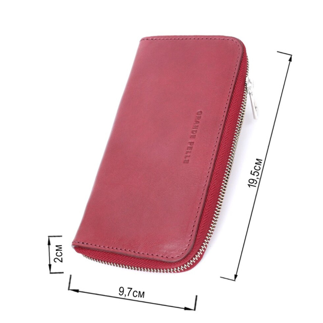 Цікавий місткий гаманець на блискавці з високоякісної натуральної шкіри. Має гарний колір марсала та гладку фактуру. Внутрішнє наповнення добре продумане та практичне, в ньому розмістяться купюри, монети, різні картки і навіть смартфон. Запакований цей гаманець у фірмову картонну коробку з логотипом бренду. Ми впевнені, що вироби української фірми Grande Pelle, нікого не залишать байдужими, і Ви ще неодноразово повернетесь за цими якісними шкіряними аксесуарами.