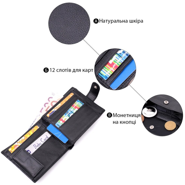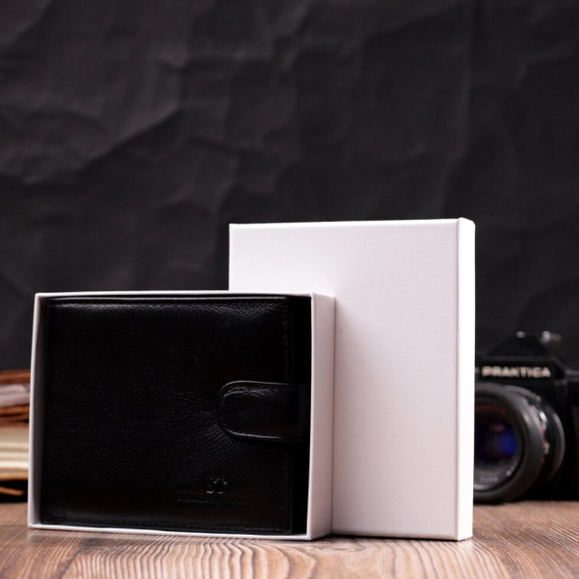 Якісне портмоне для чоловіків із натуральної шкіри найвищої якості. Аксесуар складається з двох містких відділень для купюр, кишені на блискавці, на всю довжину, дванадцяти осередків для карт, чотирьох прихованих кишень та кишені для монет. Зовні виріб прошитий рівним рядком по краю і прикрашений тисненням логотипу компанії виробника. Портмоне доповнено надійною фурнітурою та міцною підкладкою. Запакований гаманець у фірмову картонну коробку білого кольору.