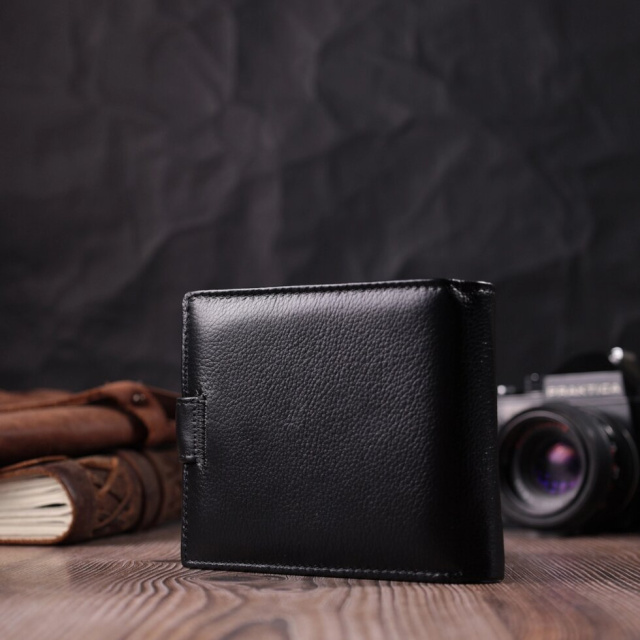 Якісний гаманець для чоловіків, які цінують якість та практичність. Аксесуар місткий з натуральної шкіри, він складається з двох містких відділень для купюр, кишені під плівкою, десяти осередків для карт, трьох прихованих кишень та кишені для монет. Портмоне доповнено надійною фурнітурою та міцною підкладкою. Запакований гаманець у фірмову картонну коробку білого кольору.