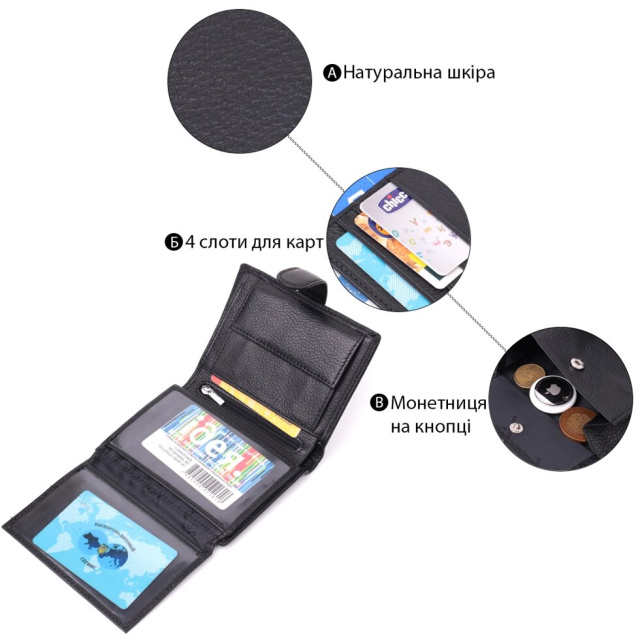 - 1 вертикальна кишеня для монет на блискавці всередині;