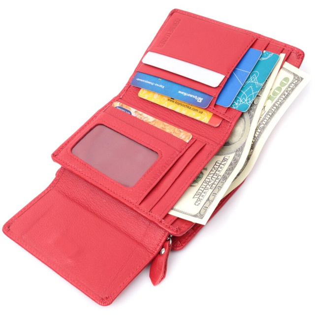 Яскравий гаманець середнього розміру для жінок із натуральної якісної шкіри. Модель має зручний розмір та закривається на магніт. Зовні можна побачити відділення для монет. Аксесуар всередині оснащений двома відділеннями для купюр та одинадцятьма осередками для карт. Запакований аксесуар у білу щільну картонну коробку з фірмовим логотипом.