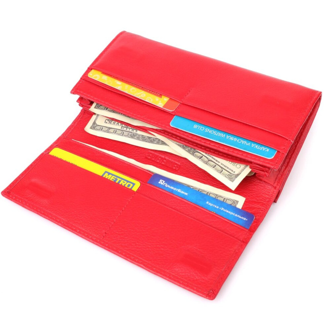 Яскравий жіночий гаманець з натуральної шкіри – чудовий вибір для тих, хто цінує якість, надійність та продуманий функціонал. Аксесуар виготовлений з добротної натуральної шкіри, яка відрізняється міцністю, приємною фактурою та стійкістю до зносу. Модель продумана до дрібниць: вона чудово підійде для повсякденного використання, забезпечуючи зручне зберігання всіх необхідних дрібниць. У нижньому правому кутку розташований акуратний металевий логотип бренду - ненав'язливий, але виразний акцент, що підтверджує оригінальність виробу та високий рівень виконання. Гаманець доповнений надійною фурнітурою та міцною підкладкою, що гарантує тривалий термін служби та комфорт при експлуатації. Аксесуар упакований у фірмову білу картонну коробку - ідеальне рішення як для особистого користування, так і стильного подарунка.