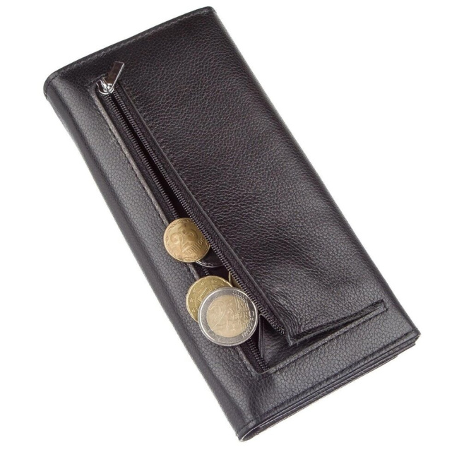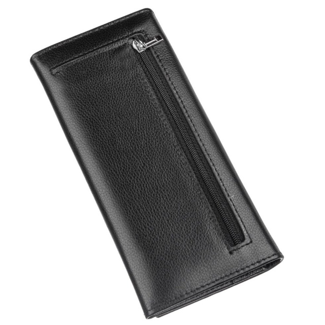 Місткий і чудовий жіночий гаманець. Модель виконана в класичному чорному кольорі, який вам підійде під будь-які речі взуття та аксесуари. Виконано виріб з м'якої щільної шкіри, приємною на дотик і доповнено якісною фурнітурою сріблястого кольору. Модель в шкірі флотар, яка проноситься значно більше. Такий гаманець стане ідеальним помічником для вас і ваших необхідних дрібниць. Дана модель стане прекрасним подарунком для будь-якої дівчини. У комплекті йде картонна фірмова коробка білого кольору.