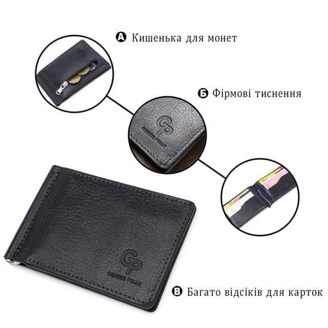 Чудовий аксесуар для чоловіків, які віддані мінімалістичному стилю. У такий виріб помістяться купюри, кредитні картки і монети. Виконаний він з натуральної високоякісної шкіри і має приємну зернисту фактуру. Упаковка представлена у вигляді щільного фірмового чохла з логотипом бренду.