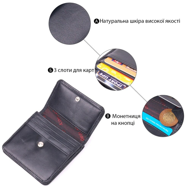 Стильний компактний жіночий гаманець із натуральної гладкої шкіри високої якості. У виробі використано якісну металеву фурнітуру, а також міцну фірмову підкладку. Невеликий шкіряний гаманець поміститься навіть у найменшу сумочку. Закривається модель у дві додавання на кнопку. Такий гаманець однозначно порадує будь-яку жінку.