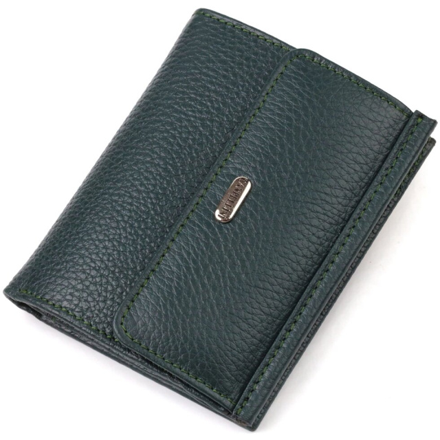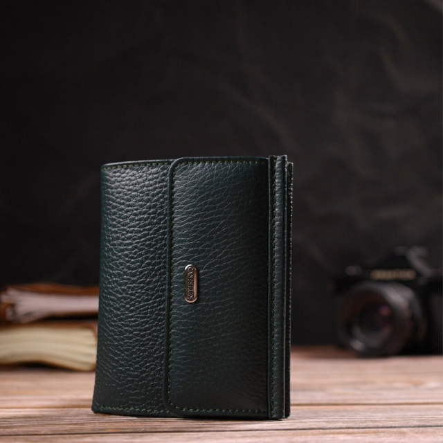 Чудовий жіночий гаманець середнього розміру із натуральної шкіри флотар, що має зернисту фактуру. Аксесуар має одне основне відділення з тканинною перегородкою в яке поміщаються купюри всіх номіналів, п'ять кишень для карток (одна під сіточкою), дві приховані кишені та монетницю. Закривається аксесуар у два складання на кнопку. Купуючи шкіряний аксесуар цієї фірми, собі чи на подарунок, будьте певні, що він прослужить Вам не один рік.