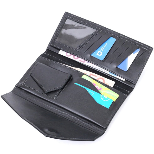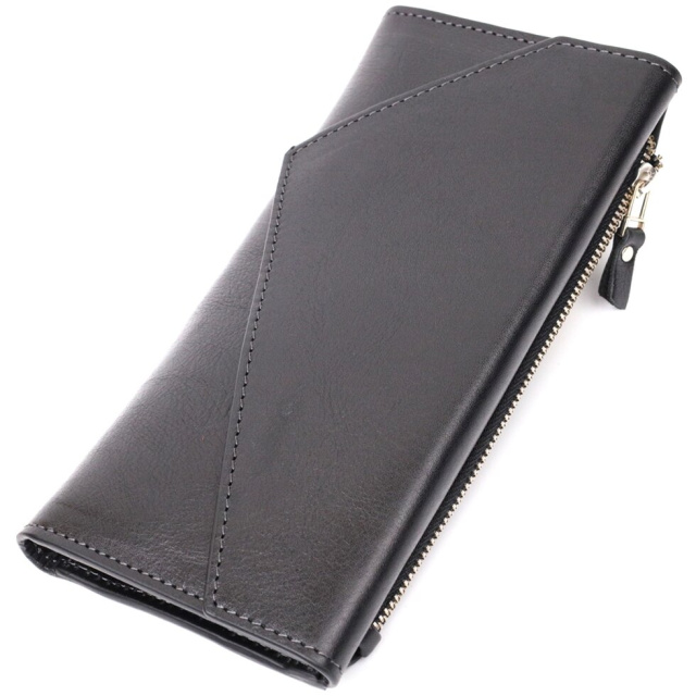 Оригінальний жіночий гаманець, який також можна застосовувати у вигляді клатчу. Виконаний аксесуар у гарному кольорі, тому підійде під будь-який одяг. Матеріал виготовлення – натуральна високоякісна шкіра з високою стійкістю до зношування. Наповнення представлене у вигляді трьох відділень на всю довжину, маленької кишеньки для дрібниць, що закривається на магніт, одинадцяти слотів для карток та монетниці зовні. Запакований аксесуар у фірмовий чохол.