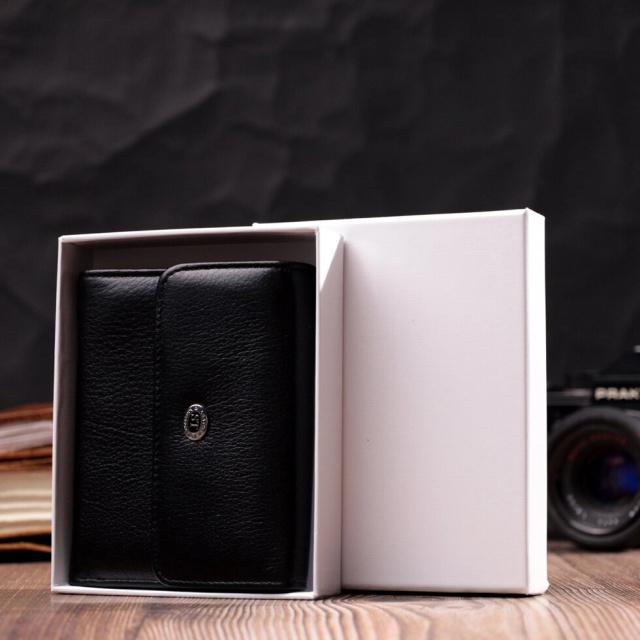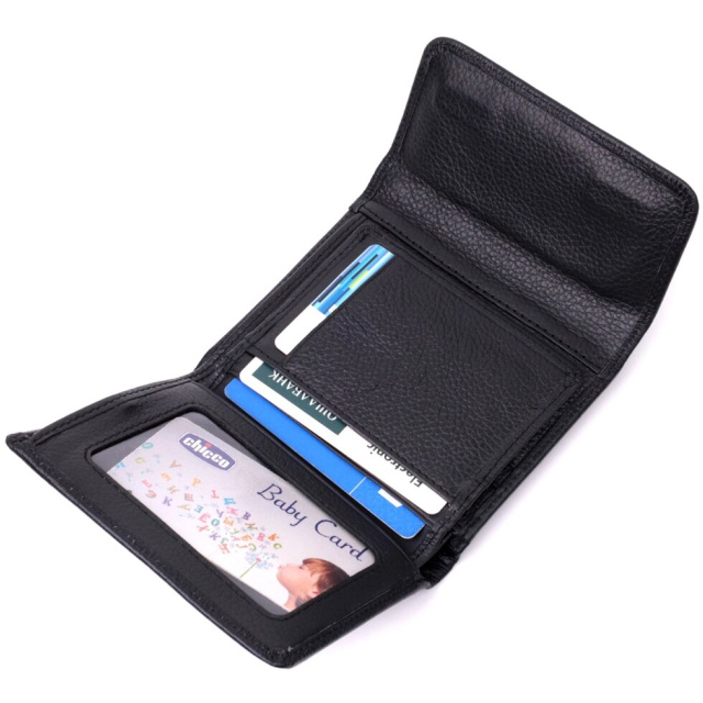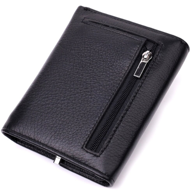 Практичний гаманець середнього розміру з натуральної шкіри найвищої якості. Аксесуар складається з одного місткого відділення для купюр, кишені на блискавці через всю довжину, шести осередків для карт, чотирьох прихованих кишень, кишеньки під плівкою та зовнішньої кишені на блискавці, що чудово прослужить для монет. Зовні виріб прошитий рівним рядком по краю і прикрашений металевим логотипом компанії виробника, який розміщений на клапані посередині. Портмоне доповнено надійною фурнітурою та міцною підкладкою. Укомплектований гаманець у фірмову картонну коробку білого кольору. Виріб стане ідеальним подарунком для дівчини будь-якого віку.