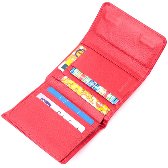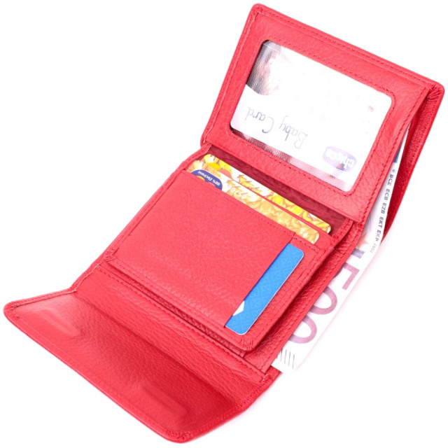 Жіночий яскравий гаманець середнього розміру із натуральної шкіри найвищої якості. Аксесуар складається з одного місткого відділення для купюр, кишені на блискавці через всю довжину, шести осередків для карт, чотирьох прихованих кишень, кишеньки під плівкою та зовнішньої кишені на блискавці, що чудово прослужить для монет. Зовні виріб прошитий рівним рядком по краю і прикрашений металевим логотипом компанії виробника, який розміщений на клапані посередині. Портмоне доповнено надійною фурнітурою та міцною підкладкою. Укомплектований гаманець у фірмову картонну коробку білого кольору. Виріб стане ідеальним подарунком для дівчини будь-якого віку.