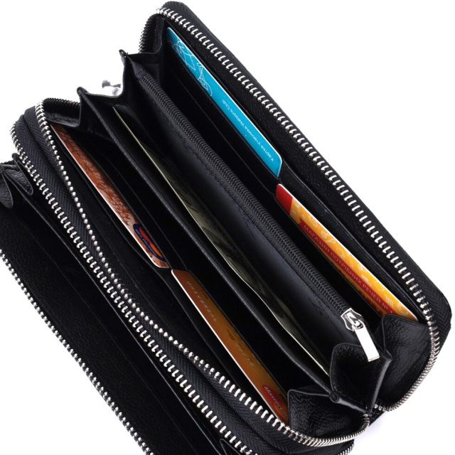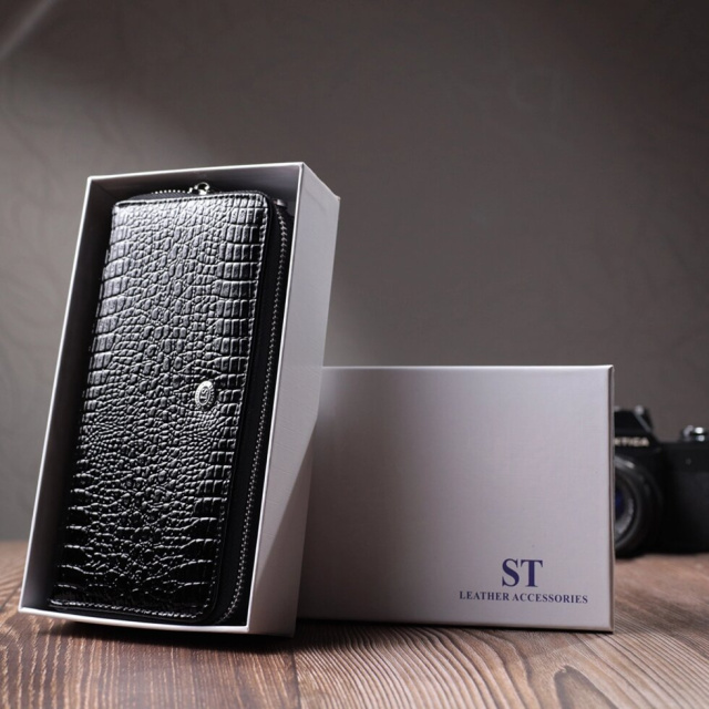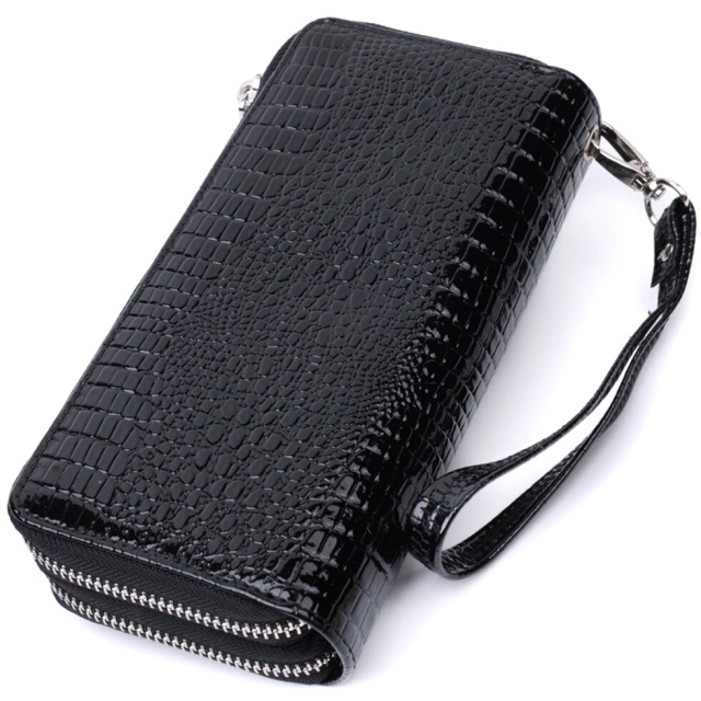 Зручний жіночий клатч у класичному стилі із натуральної лакованої шкіри з тисненням під рептилію. Для максимальної зручності гаманець розділений на два великі відділення, що закриваються на блискавці. Аксесуар має все необхідне, щоб стати Вам незамінним помічником у повсякденному житті. Ви легко помістите в нього паперові купюри, монети, документи, картки і навіть смартфон. На лицьовій стороні вгорі посередині розташований металевий логотип виробника, що є запорукою якості виробу. Запакований аксесуар у білу щільну картонну коробку з фірмовим логотипом.