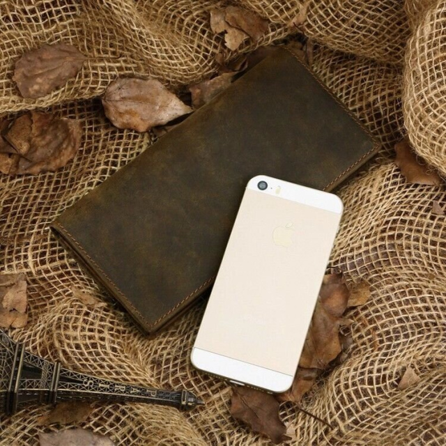 Сучасний, якісний гаманець коричневого кольору. Аксесуар виконано з натуральної вінтажної шкіри, яку прийнято називати Crazy Horse (Крейзі Хорс). Відмінними рисами такої шкіри, є потертості і неоднорідність забарвлення, що надає виробу оригінальність. Гаманець упакований в текстильний пилозахисний чохол білого кольору.