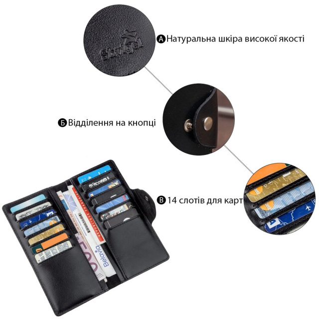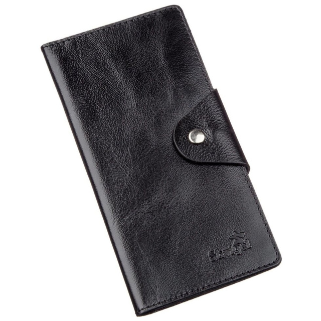 Якісний вертикальний гаманець з натуральної шкіри Алькор чорного кольору. Відмінною особливістю такої шкіри є її дрібні подряпини і блиск як в гладкій шкірі. Аксесуар дуже красиво переливається на сонці. Просторі відділення для купюр і слоти для карток будуть тримати ваші кошти в порядку і в цілісності. Аксесуар поміститься в сумку або портфель. Прикрашена модель на лицьовій стороні тисненим логотипом бренду. Закривається виріб на одну з двох кнопок (ближню або дальню) в залежності від його наповненості. Якщо ви перебуваєте в пошуку подарунка - радимо вам дану модель. Вона доступна в різних кольорах.