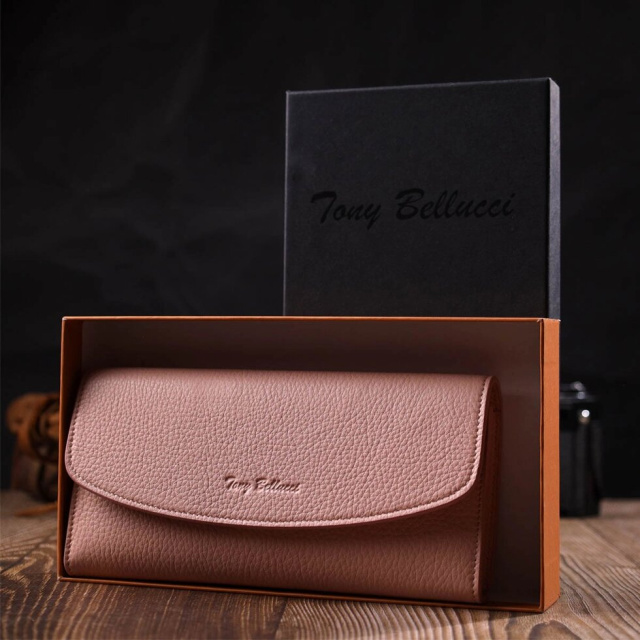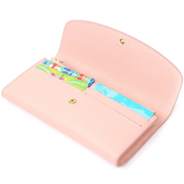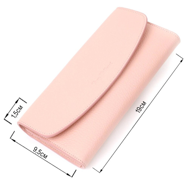 Лаконічний жіночий гаманець з натуральної шкіри флотар, для якої характерна міцність, зносостійкість та зерниста фактура. Аксесуар складається з одного широкого відділення для купюр, дванадцяти осередків для пластикових карток, однієї прилеглої кишені та монетниці на блискавці. У виробі використано якісну фурнітуру золотистого кольору. Закривається гаманець клапаном на кнопку. Купуючи цей шкіряний гаманець, Ви не тільки отримуєте стильну річ, але й отримуєте якісний аксесуар, який прослужить не один рік