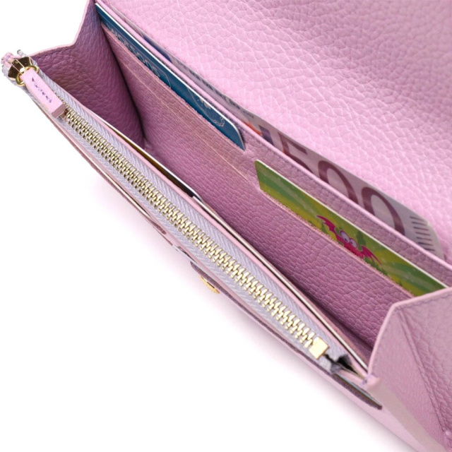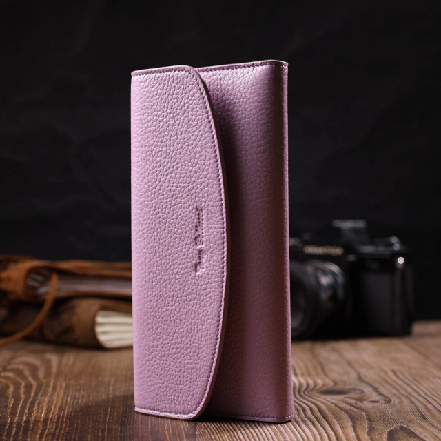 Ультрамодний жіночий гаманець з натуральної шкіри флотар, для якої характерна міцність, зносостійкість та зерниста фактура. Аксесуар складається з одного широкого відділення для купюр, дванадцяти осередків для пластикових карток, однієї прилеглої кишені та монетниці на блискавці. У виробі використано якісну фурнітуру золотистого кольору. Закривається гаманець клапаном на кнопку. Купуючи цей шкіряний гаманець, Ви не тільки отримуєте стильну річ, а й отримуєте якісний аксесуар, який прослужить не один рік.