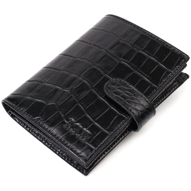 Фактурний гаманець для купюр виконаний з добротної натуральної шкіри з тисненням під крокодила. У цей аксесуар чудово поміщаються купюри всіх номіналів. Виріб складається з двох відділень для купюр, шести осередків для кредиток, трьох прихованих кишень, монетниці та чотирьох відділень під сіткою під документи. Закривається гаманець шкіряним хлястиком на кнопку. Вироби з натуральної шкіри завжди будуть чудовим подарунком для близької людини.