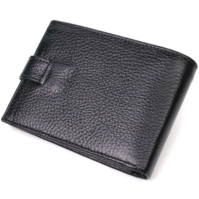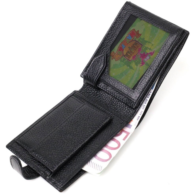 Чоловічий незамінний аксесуар - гаманець середнього розміру, горизонтального типу, виготовлений з добротної натуральної шкіри. У цей аксесуар чудово поміщаються купюри всіх номіналів. Виріб складається з трьох відділень для купюр, шести осередків для кредиток, чотирьох прихованих кишень, монетниці та трьох відділень під сіткою під документи. Закривається гаманець навпіл шкіряним хлястиком на кнопку. Вироби з натуральної шкіри завжди будуть чудовим подарунком для близької людини.