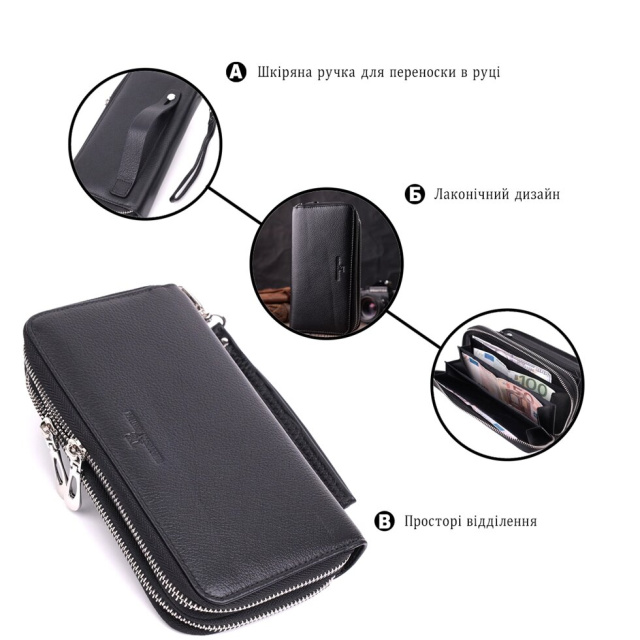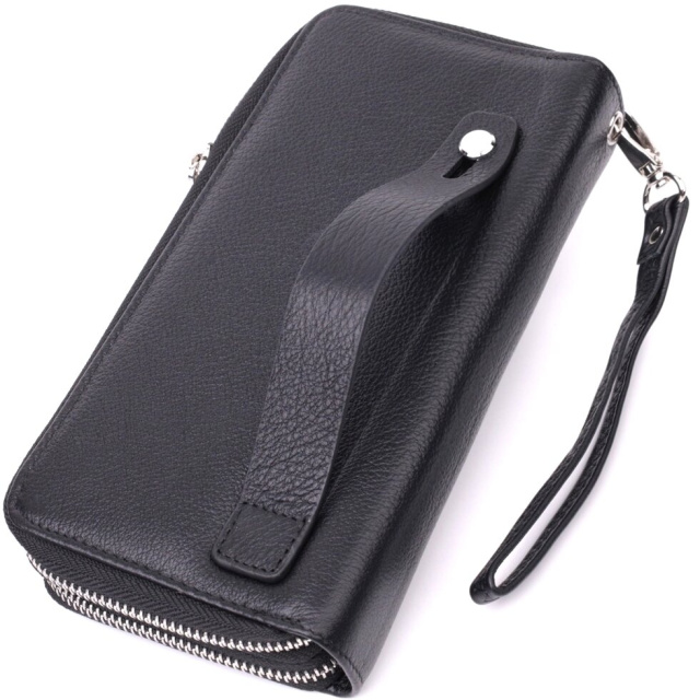 Зручний чоловічий клатч, в який легко вміщується телефон. Особливістю моделі є те, що її можна носити в руці та на кисті, для цього передбачена не знімна шкіряна ручка, на тильній стороні і шкіряний кистьовий ремінь, що знімається. Аксесуар виконаний із гладкої шкіри високої якості. З таким клатчем Ви проходите не один рік. Дуже комфортний у використанні. Модель упакована в коробочку, що дуже зручно, якщо виріб призначений для подарунка.