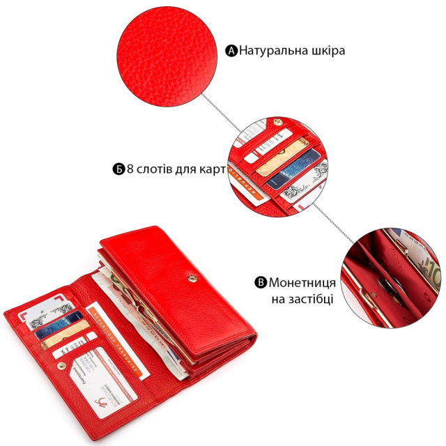 Даний жіночий гаманець має привабливий дизайн, широкий функціонал і виготовляється з якісних матеріалів: натуральної шкіри та текстилю. Внутрішній простір оснащується великими відділеннями та слотами, а також місткою монетницею, зафіксованою на застібку. Гаманець прошитий по низу подвійним швом і упаковується в красиву фірмову коробку. Величезний асортимент якісних аксесуарів є в нашому інтернет-магазині, де кожен зможе вибрати собі відмінні вироби або подарувати друзям і рідним.