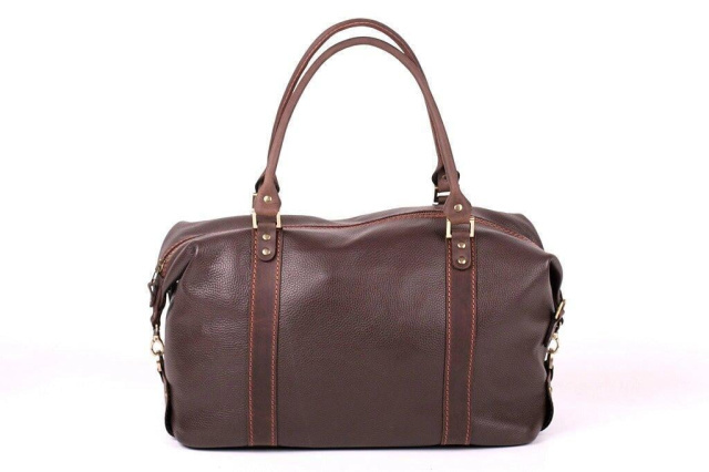 Дорожня сумка шкіряна коричнева, спортивна якісна виготовлена з натуральної шкіри флотар із рельєфною зернистою фактурою