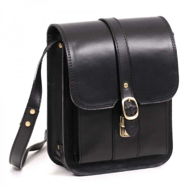 На вибір два варіанти сумки: чорний колір із прошиванням чорною ниткою і чорний колір із прошивкою коричневою ниткою.