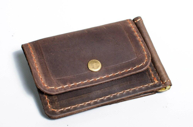 Стильний респектабельний якісний шкіряний коричневий затискач для грошей, купюр із кишенею на кнопці, кежуал casual із натуральної шкіри ВІНТАЖ crazy horse.